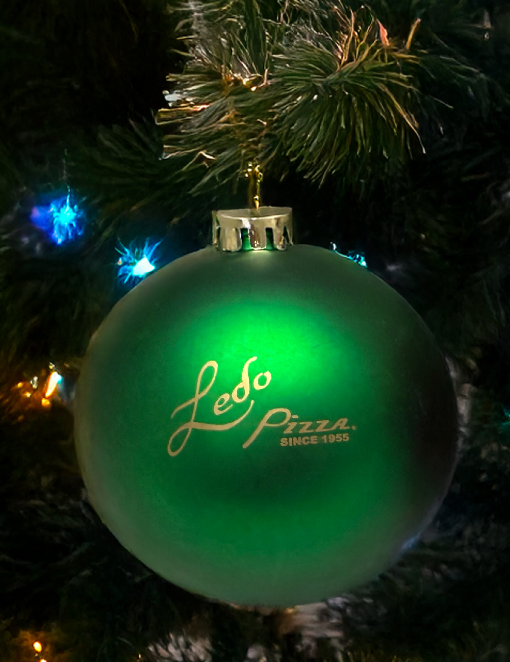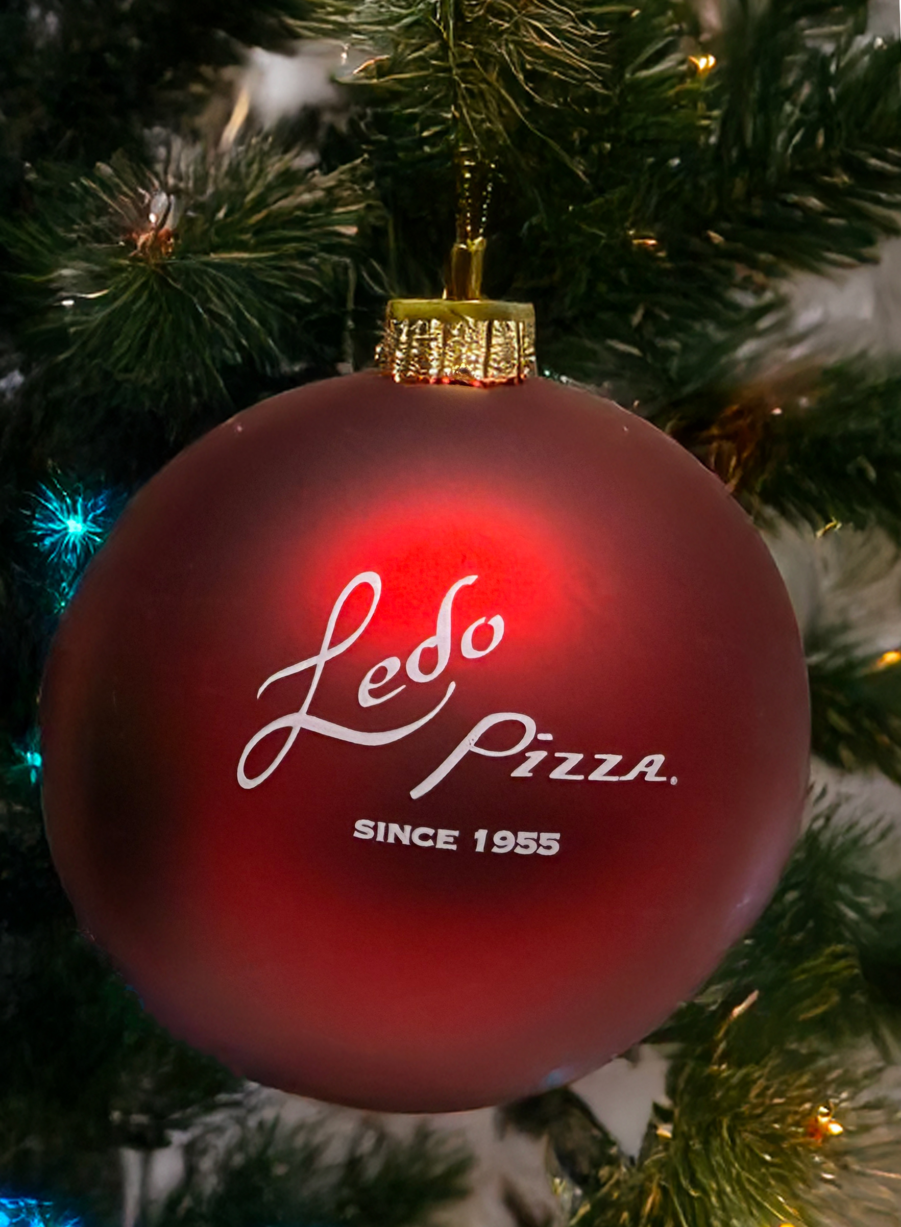 Let family, friends, and Santa know that all you want for Christmas is Ledo Pizza by showcasing a Ledo Pizza Ornament this holiday season. These classic round shatter resistant ornaments with a satin finish are a perfect addition to any tree!